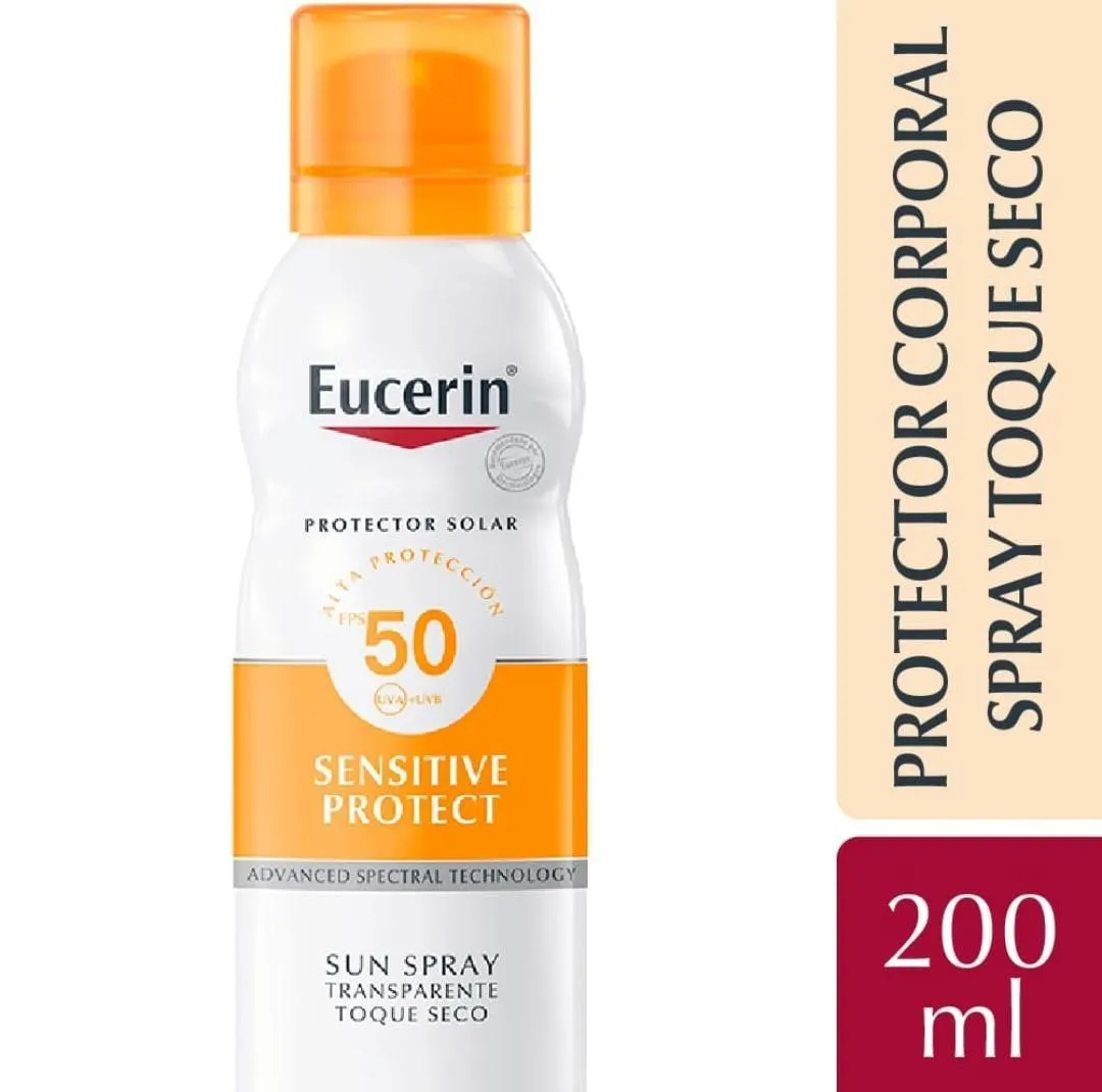 El Spray Toque Seco FPS 50 Oil Control de Eucerin es un protector solar corporal diseñado para pieles sensibles y con tendencia grasa. Su fórmula avanzada ofrece una protección eficaz contra los rayos UV y la luz de alta energía HEVIS
