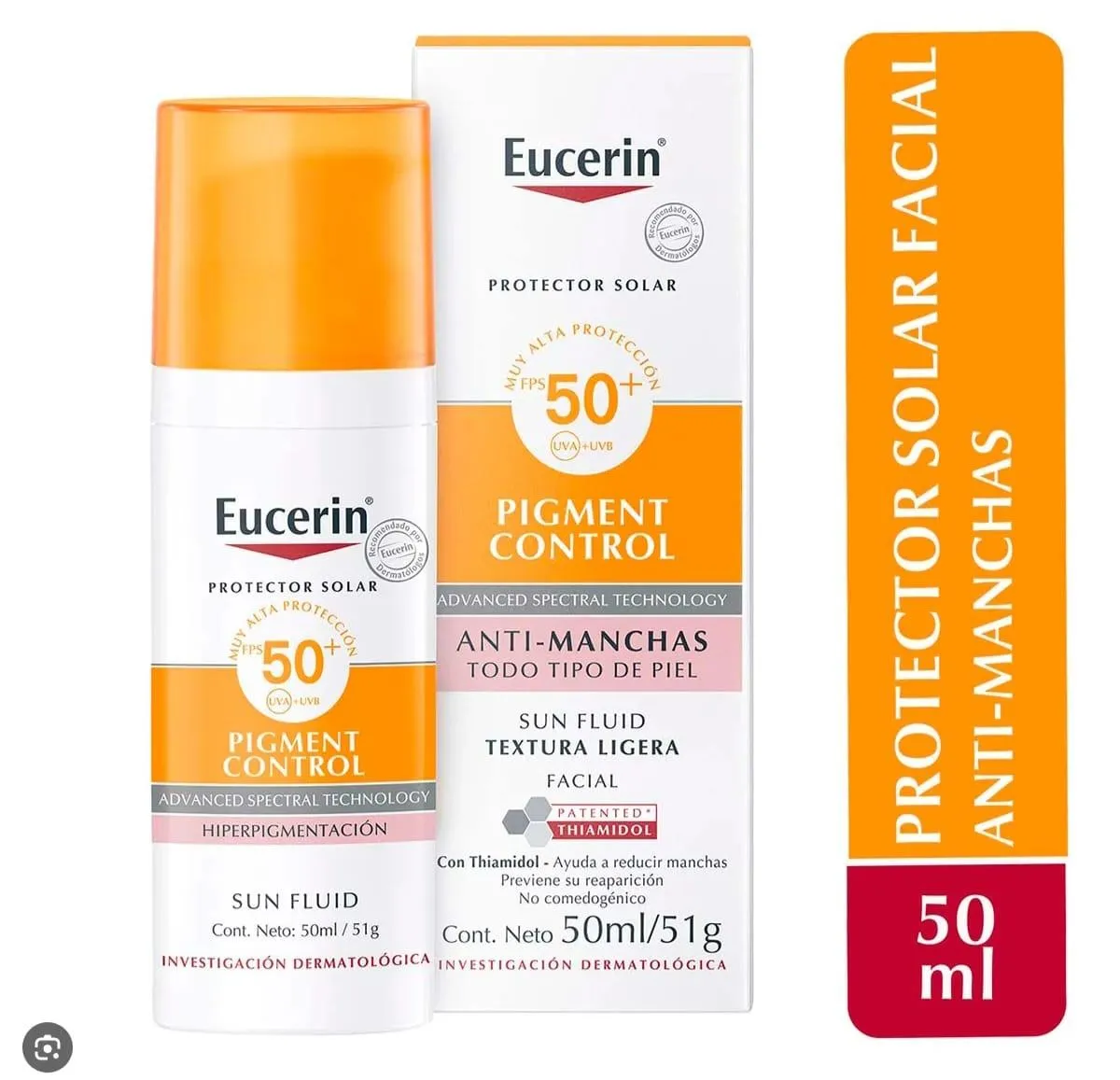 El Pigment Control Tinte Antimanchas FPS 50 de Eucerin es un protector solar facial diseñado para prevenir y reducir las manchas oscuras causadas por la exposición al sol.