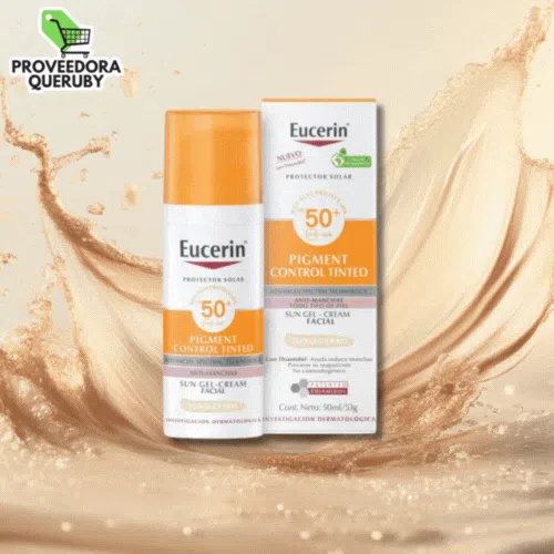 El Eucerin Sun Pigment Control FPS 50+ con color tono claro es un protector solar facial diseñado para prevenir la hiperpigmentación provocada por el sol. Aquí tienes algunos de sus beneficios principales: